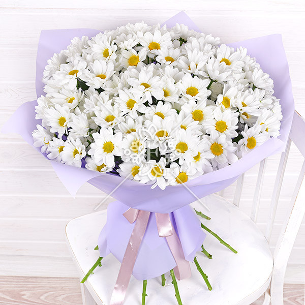Очаровательные, облачно-воздушные белые кустовые хризантемы прекрасны! Букет «В облаках любви» невесом и свеж.